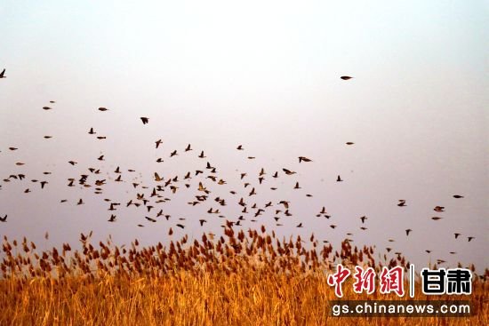 原标题:甘肃大漠水库:芦苇摇曳 飞鸟归巢