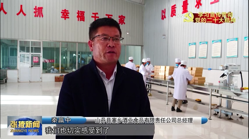 山丹县塞乡酒业食品有限责任公司总经理 秦嬴中:“我们也切实感受到了近两年园区营商环境越来越好了,就在最近,县政府还帮助企业解决了生产的一大难题,也让我们更加有信心,把企业做大做强,更好地助推地方经济发展。”