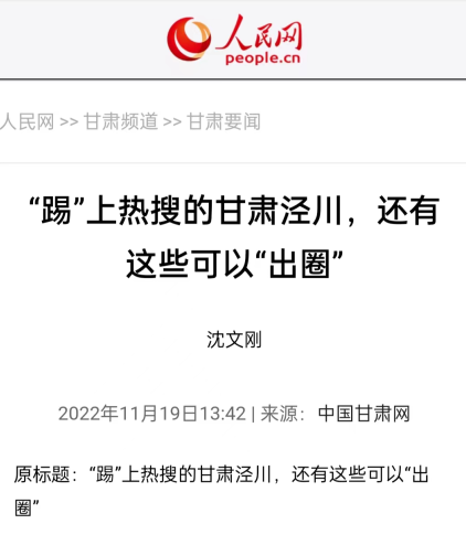 人民网发布《“踢”上热搜的甘肃泾川,还有这些可以“出圈”》
