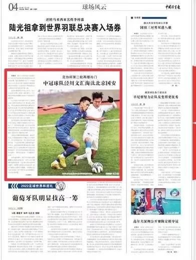 中国体育报发布《足协杯第二轮再爆冷门—中冠球队泾川文汇淘汰北京国安》