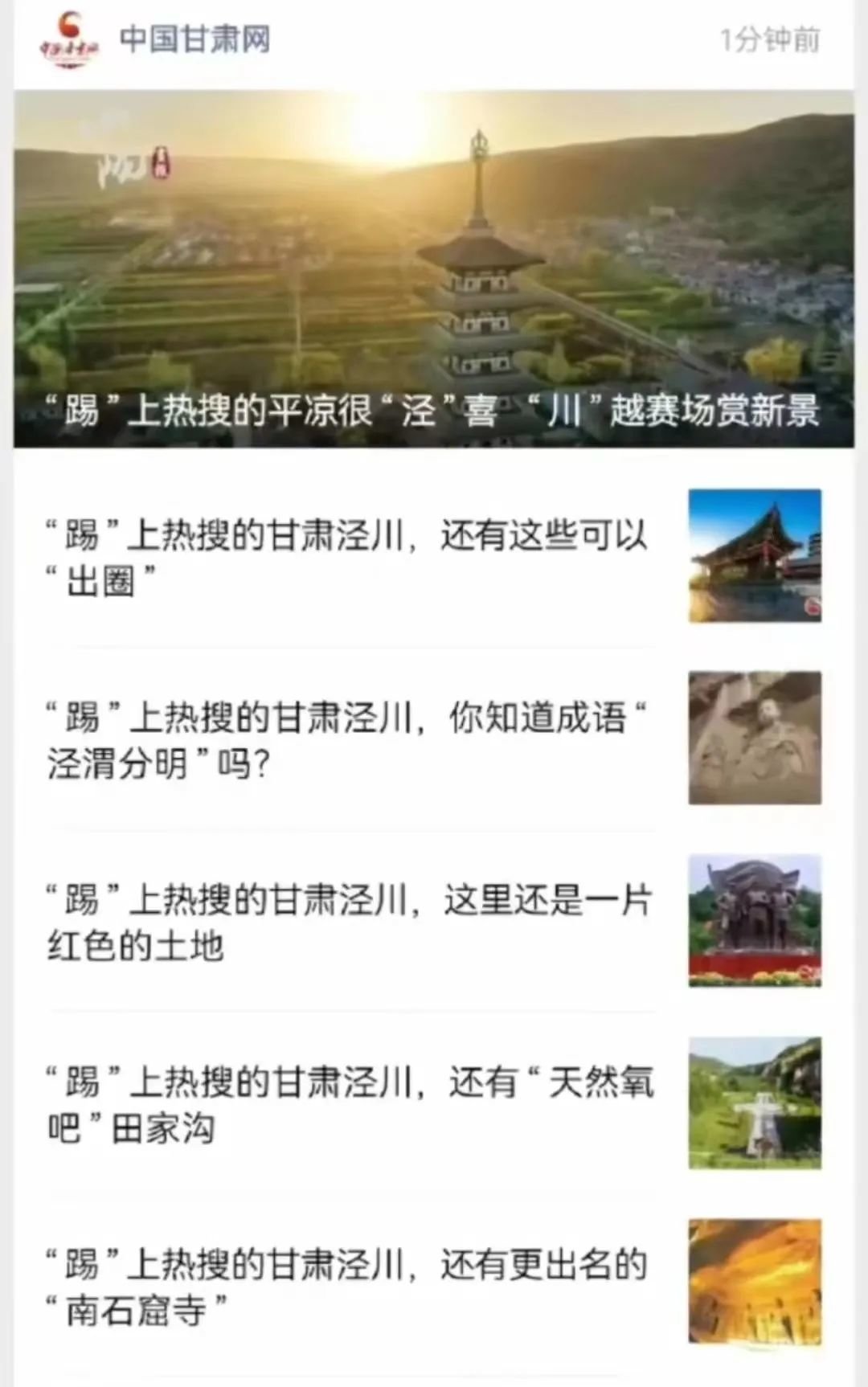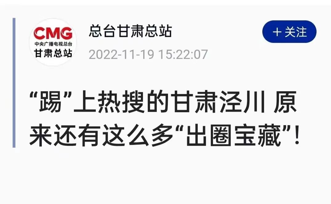 中央广播电视台甘肃总台发布《“踢”上热搜的甘肃泾川 原来还有这么多“出圈宝藏”!》