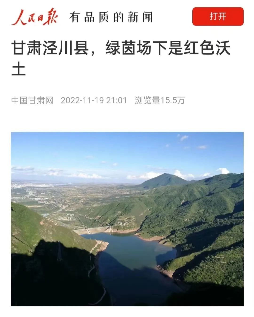 人民日报客户端发布《甘肃泾川县,绿茵场下是红色热土》