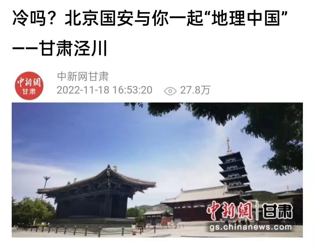 中国新闻网发布《冷吗?北京国安与你一起“地理中国”——甘肃泾川》。