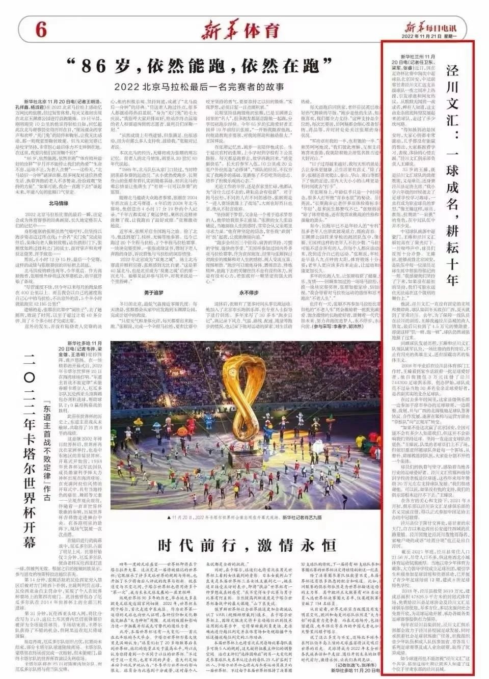 新华每日电讯发布《泾川文汇,一球成名,耕耘十年!》