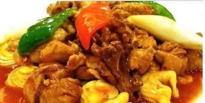 然后就是调味的鸡肉汤,这鸡肉汤可是味道浓郁,锅里放油先把鸡肉爆炒,之后再加入很多种调味料、辣椒、姜粉、精盐等,直到鸡肉呈红色,再继续用小火焖烧。
