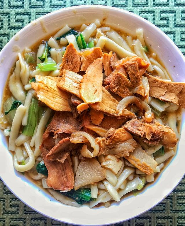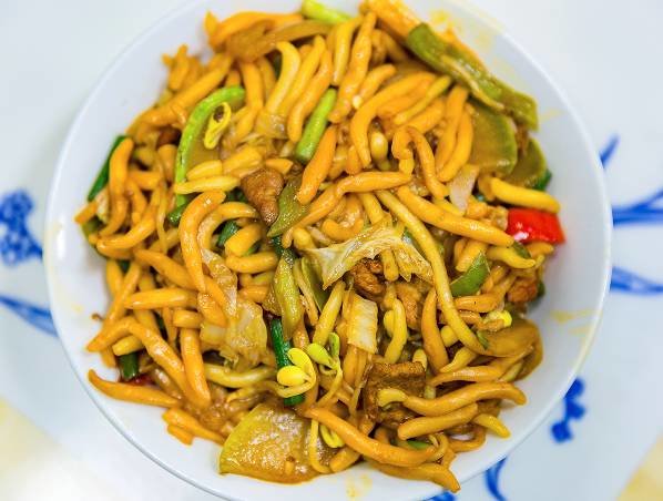 炒炮是高台的一种面食,炮仗长短不一,面很劲道,配上卤肉,还有西红柿、洋葱,根据个人喜好可以添点辣椒和酱油,记得一定再要一碗面汤,当地人都这样!