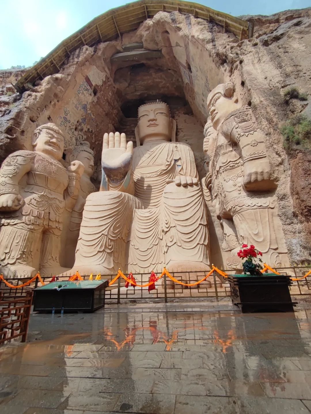见过了大自然的巍峨辽阔,再来看看人类的伟大杰作。在凉州,天梯山石窟可谓是颇负盛名的旅游胜地。天梯山山峰巍峨,道路崎岖,石窟中大佛依山而坐,脚下碧波荡漾,薄云缠绕其身,构成一幅山、水、佛、云浑然一体的壮观奇景。