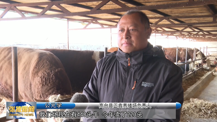 高台县正鑫养殖场负责人 公元学 :“我们场现在有440头牛,今年卖了220头,公牛一头能卖两万五六,母牛一头能卖一万六七,最近又进了一批50头小牛犊。”
