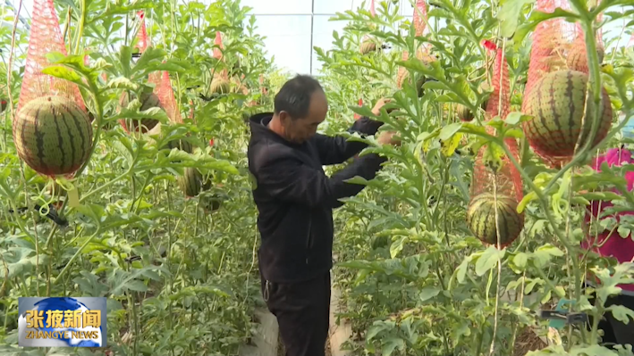 这几天,走进高台县宣化镇东庄村的高标准钢架大棚,错落有致的吊瓜点缀在绿色藤蔓间,成熟待摘。有多年西瓜种植经验的村民方得军,今年承包了一座钢架大棚,通过科学管理和不断摸索,实现了一年三茬轮作。