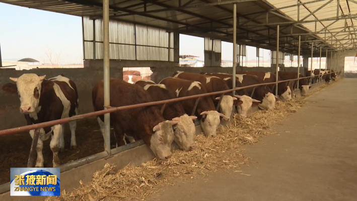 在高台县合黎镇七坝村的正鑫养殖场,负责人公元学正在给牛添加草料。从最开始的几头牛,发展到了现在的400多头,公元学靠养殖过上了好日子。