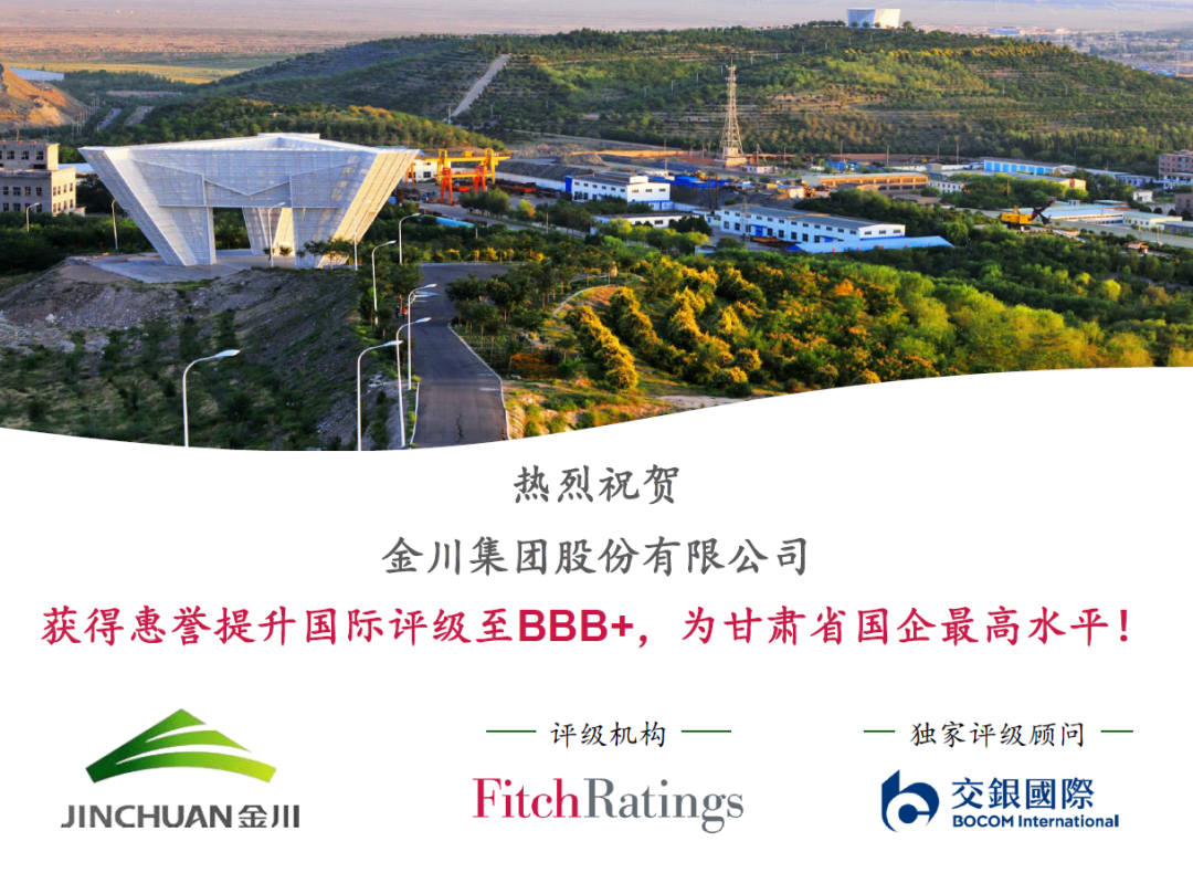 近日,国际三大权威信用评级机构之一的惠誉国际评级有限公司(下称“惠誉”)将金川集团信用评级由“BBB”上调至“BBB+”,展望为稳定,同时惠誉将金川集团独立信用评级自“bb+”上调至“bbb-”投资级,将存量2.8亿美元债评级从“BBB”上调至“BBB+”。本次信用评级调升是金川集团首次获得惠誉评级后短期内的第二次调升,标志着金川集团历史性实现双评级均为投资级,跃居甘肃省属国有企业最高国际信用评级。