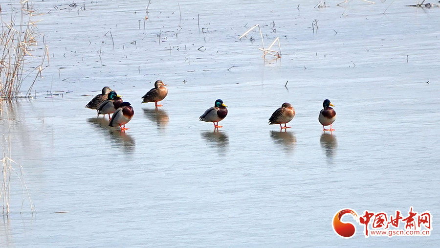 冬日,崇信汭河边寒意料峭,部分河面已结起薄冰,晶莹剔透,清可见底。远远游来的绿头鸭在水中时而回头轻抚羽毛,时而羽翅轻点水面,溅起一圈圈水花随着涟漪荡开,伴着河中摇曳的芦苇,形成了一幅动静相衬的寒鸭戏水图。