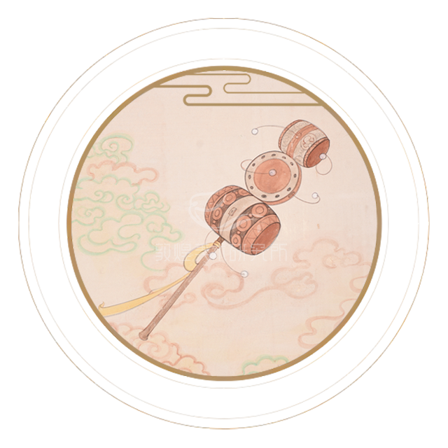 鼗鼓是中国非常古老的乐器,鼓身两旁缀灵活小耳,执柄摇动时,两耳双面击鼓作响。鼗鼓之声,玲珑清透,欢快愉悦。