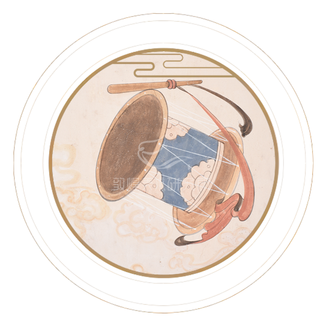 羯鼓一种出自外夷的乐器,腰部细,两面均可击打。羯鼓演奏时,声响短促紧凑,音色通透空阔。
