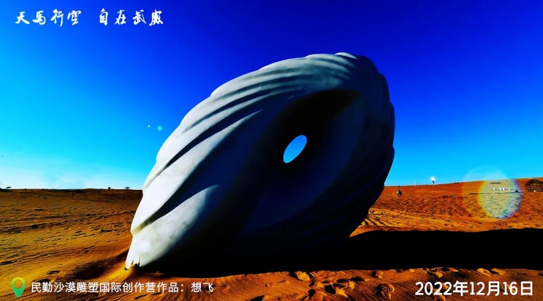 作品寓意:民勤这块土地,曾经是富饶的绿洲,如今不断的被无情沙漠侵蚀,政府与人民齐心合力,为将来努力奋斗。本创作以一个近乎圆形的流体,描述气体与物体交互作用的现象,同时在作品中间顺势形成的的一个漩涡,整体是一个无限循环且向前移动的造型,象征民勤这美丽的绿洲城市,能够聚集能量,拥有无限可能。
