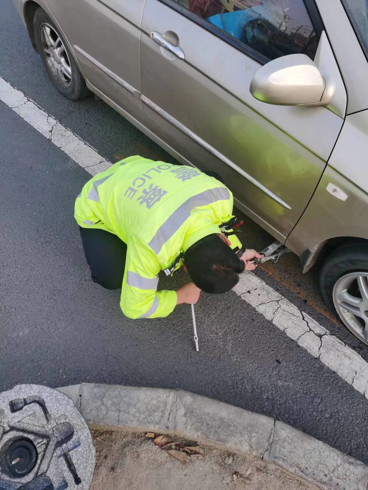 原来,12月18日9时,家住雁滩的董先生从家里开车出门办事,行至新港城十字路口时,汽车右前轮发生爆胎。董先生虽开车多年,但从未遇见爆胎的情况,加上年龄大了,面对备胎他一时束手无策。为避免影响交通,董先生勉强将车辆挪至慢车道边上,并拨打救援电话。焦急等待救援的过程中,该路段执勤交警上前询问情况,随后从警车上取来千斤顶帮助董先生更换了轮胎,临走还提醒董先生注意轮胎保养防护。