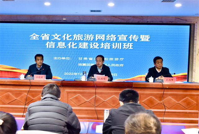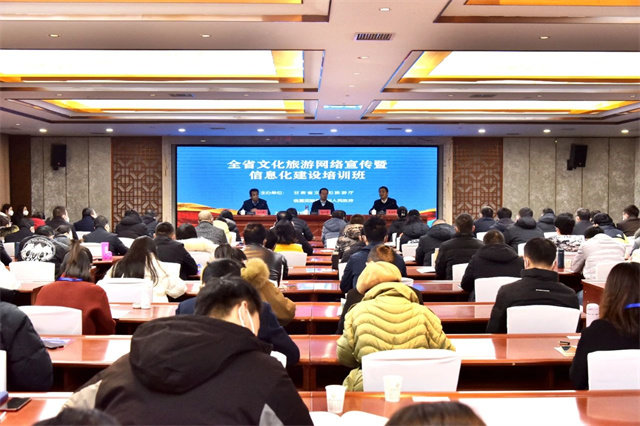 12月27日上午,由甘肃省文化和旅游厅、临夏回族自治州人民政府共同主办的全省文化旅游网络宣传暨信息化建设培训班在临夏市开班。临夏州副州长毛鸿博出席开班仪式并致辞,省文旅厅科技信息处负责人受省文旅厅领导委托作了讲话,临夏州文化广电和旅游局负责人主持开班仪式。