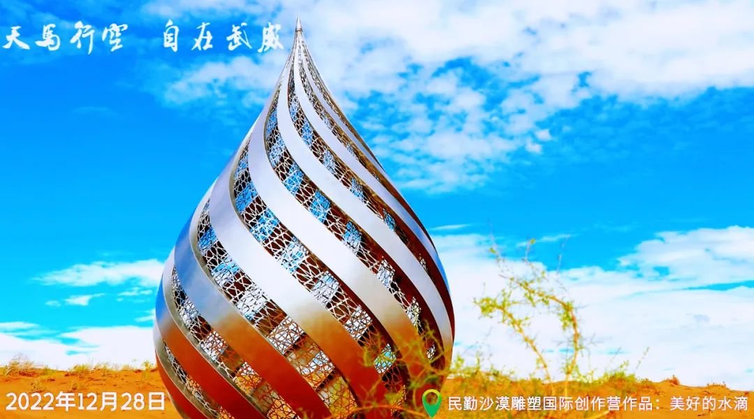 作品寓意:沙漠中“水滴”这一意象与周围环境的对比。这个图像,是关于“美之定义”的象征物,兼具抽象与具象的综合特征。