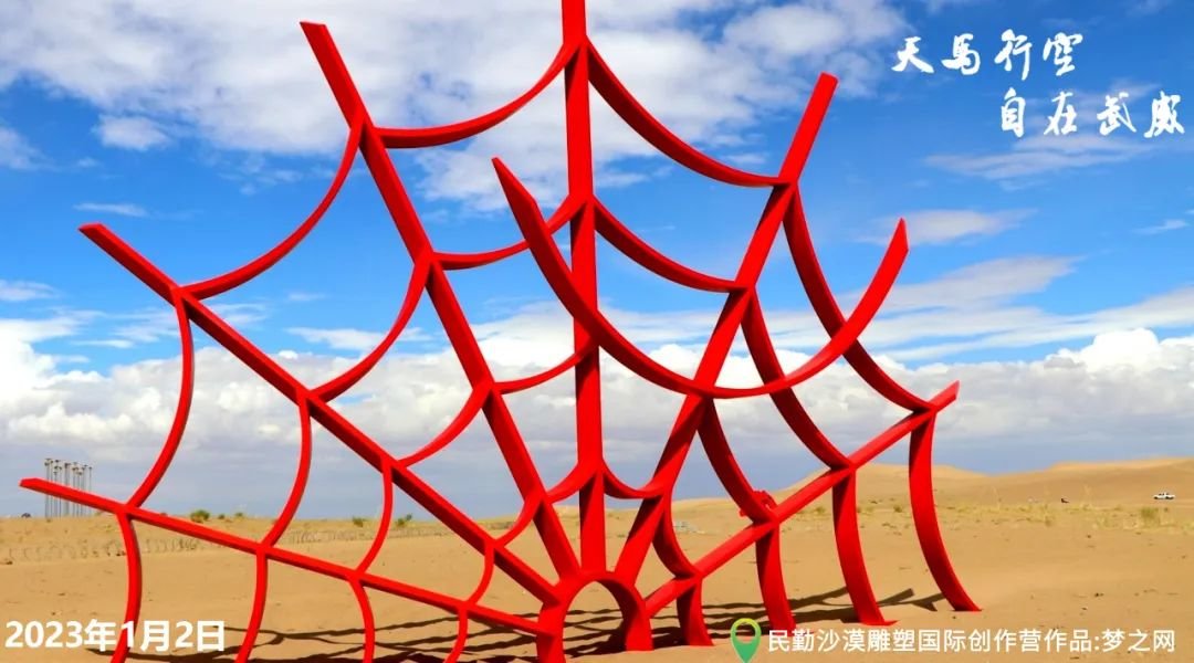 作品寓意:在沙漠的广阔空间里,自然是至高无上的。在静默的沙漠中,人类可以反思性灵,并思索人生道路。这个蜘蛛网,会把那些远离我们梦想和希冀的事物,重新收拢起来。