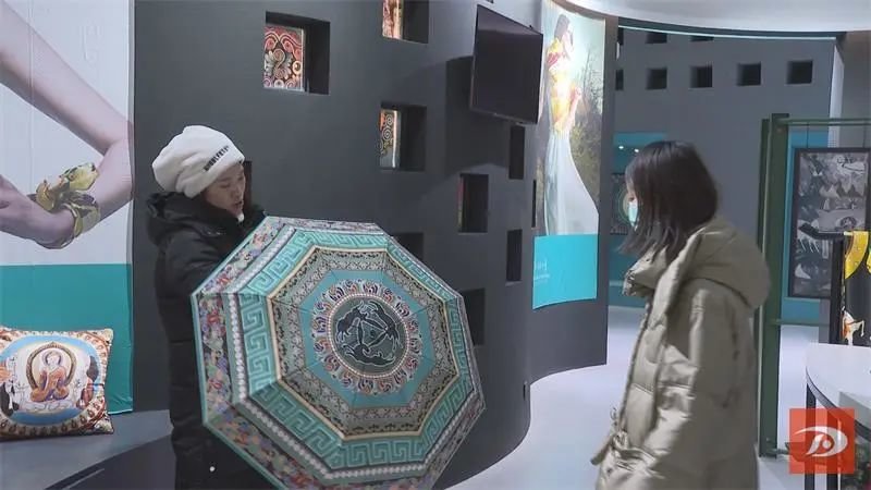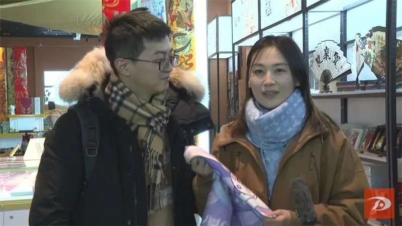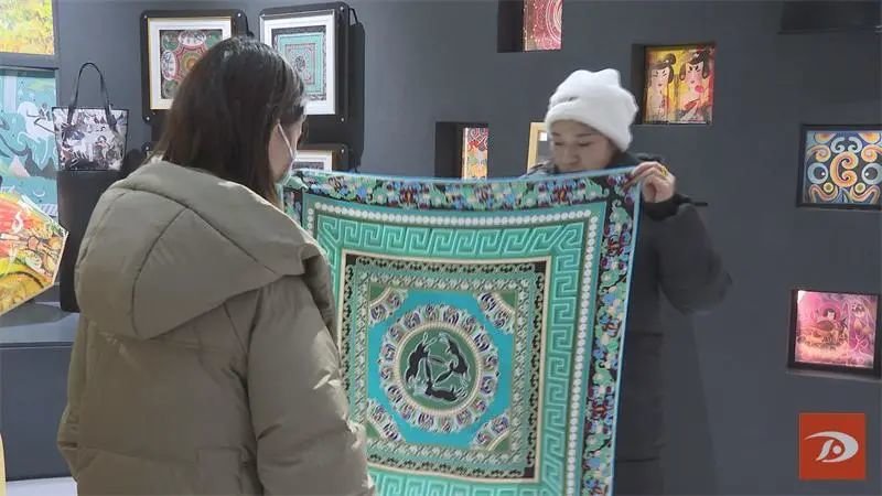北京游客邱女士说:“一直以来我们都特别喜欢敦煌文化,今年是兔年,我的母亲也属兔,所以正好有这样一个敦煌文化与兔子这个属相结合的一个三生三世这样的一个图案,我们特别喜欢。”