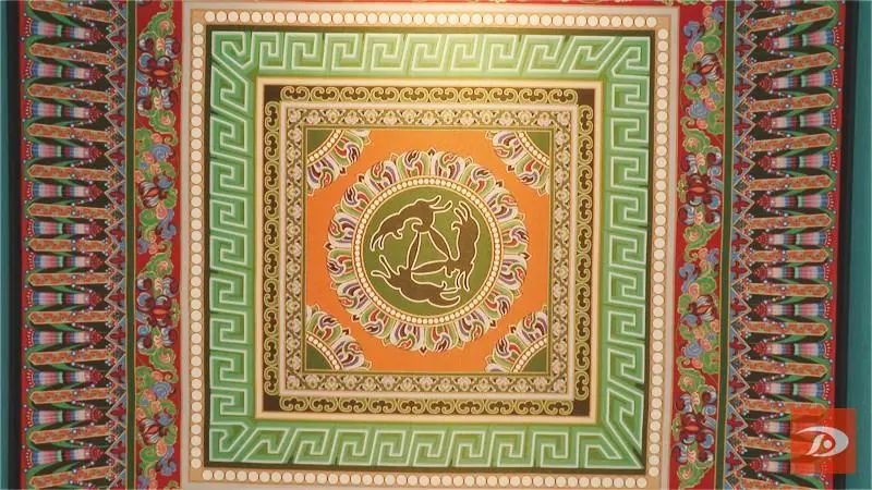 在敦煌莫高窟第407窟窟顶藻井上有一幅“三兔共耳”图案,三只兔子首尾相连、循环往复、姿态灵动、彼此追随,寓意着吉祥圆满、生生不息。这样的图案在敦煌博物馆大厅顶部也有一幅,它们遥相呼应,共同讲述着千百年来敦煌文物中的“兔”文化。