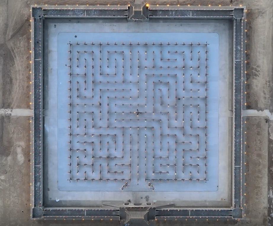 “卍”字灯城横竖各19排,每排19杆,每杆都挂有花灯,由近400盏花灯点缀。观灯时,游客只能按路线行进,左旋右转,直到出口,既赏灯,又宛如走“迷宫”,很有意趣。灯城亮灯时间自正月初五持续至正月二十八,有祈福纳祥之意。