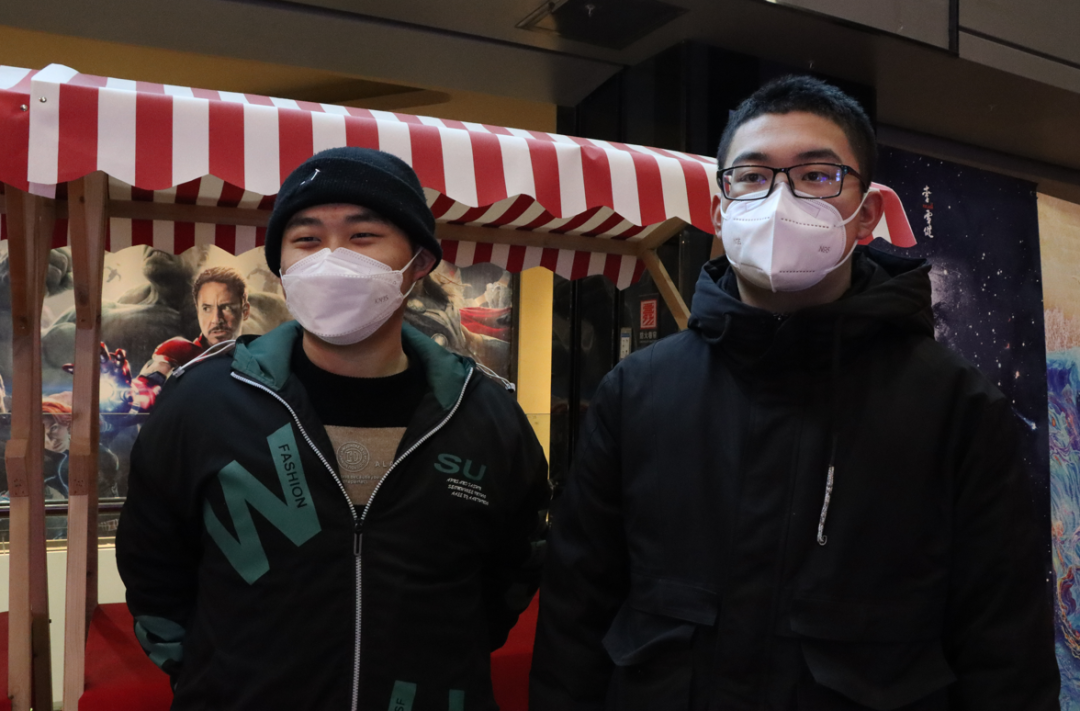 “今年春节档的几部电影,从预告片出来就开始期待了,我们买电影票的时候也基本上满座了,刚和同学看了《满江红》,悬疑、喜剧、爱国因素融合在一起,十分精彩。” 高二学生李长泽和他的朋友岳青云告诉记者。