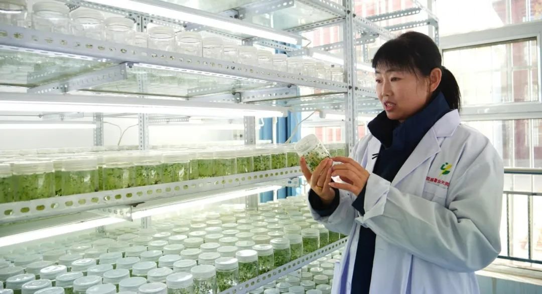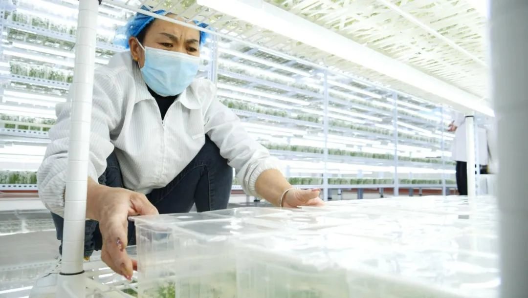 在甘肃祥和种业有限责任公司植物组培中心,工作人员正在全神贯注地进行脱毒马铃薯苗的接种。精致小巧的培养皿里,种苗在营养液的滋养下长势正旺。