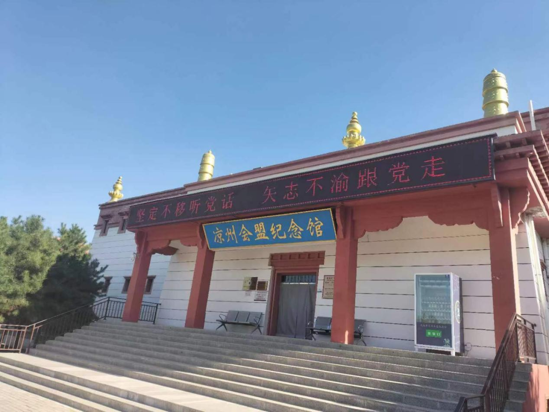 武威市凉州会盟纪念馆位于甘肃省武威市凉州区武南镇百塔村,原为白塔寺,藏语称作夏珠巴第寺,因寺内有大小宝塔百余座,人们又称其为“百塔寺”。公元13世纪中期,藏族和蒙古族两位代表性的杰出人物萨迦班智达·贡嘎坚赞和阔端在此进行了“凉州会谈”,达成了西藏归顺蒙古汗国的条件,是西藏归属中央政府行政管辖的历史见证地。