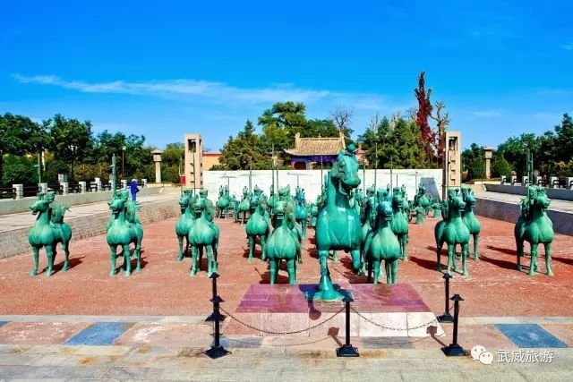 雷台汉文化博物馆 位于武威市凉州区北关中路,是中国旅游标志“马踏飞燕”的出土地,现为国家AAAA级旅游景区。主要景点有:全国重点文物保护单位雷台汉墓、省级重点文物保护单位雷台观、整体放大6倍的99件铜车马仪仗俑、汉文化陈列馆、凉州词馆等,是一座集考古、研究、教育、观赏于一体的综合性景点。