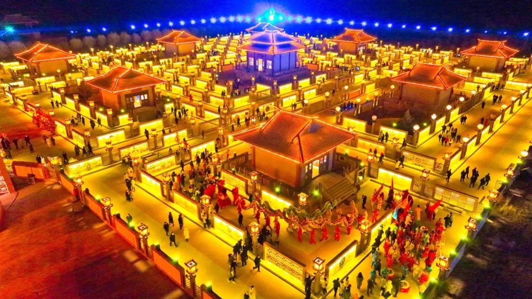 1月31日晚,农历正月初十,“中国规模最大的灯阵”九曲黄河灯阵在甘州区碱滩镇屋兰古镇启灯迎客,吸引了众多市民和游客前来观赏。