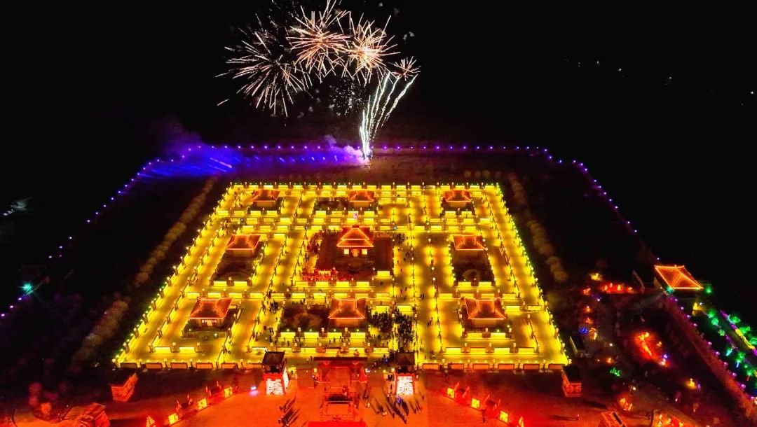 据悉,“九曲黄河灯阵”是甘州区碱滩镇古城村一带流传了上千年的历史文化遗产,起源于殷商时期,有千年的传承历史。灯阵占地150亩,阵内游客步道全长2.4公里,按九宫八卦布有九座大殿,365盏明灯设于旗下,代表365个行业或365天。还设有700多面文化墙,每个墙面均与中国传统文化融合,包含二十八星宿、二十四节气、十二生肖、五行四象等内容,并且大量植入了张掖乃至河西走廊和丝绸之路的许多地方文化元素,让游客在观灯、游阵、祈福时可以观赏烟花、社火表演、民俗演艺等传统文化活动。灯阵被确定为甘肃省省级非物质文化遗产,2019年被上海大世界基尼斯总部认定为“中国规模最大的灯阵”。(王将 刘枫 李自海)