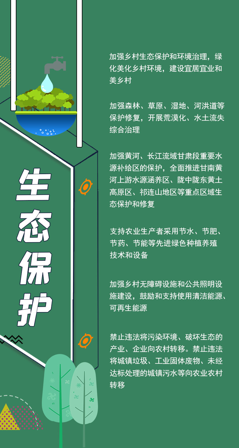 《甘肃省乡村振兴促进条例》是我省“三农”领域一部固根本、稳预期、利长远的基础性、综合性地方性法规。《条例》紧密结合甘肃实际,突出地方特点和特色,填补了我省乡村振兴领域地方立法的空白,对于促进我省乡村产业振兴、人才振兴、文化振兴、生态振兴、组织振兴和推进城乡融合发展,具有重要的里程碑意义。乡村振兴如何发展,一起来看《条例》中的重点内容。