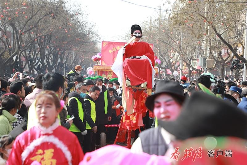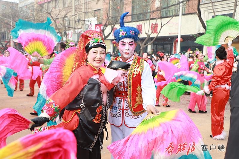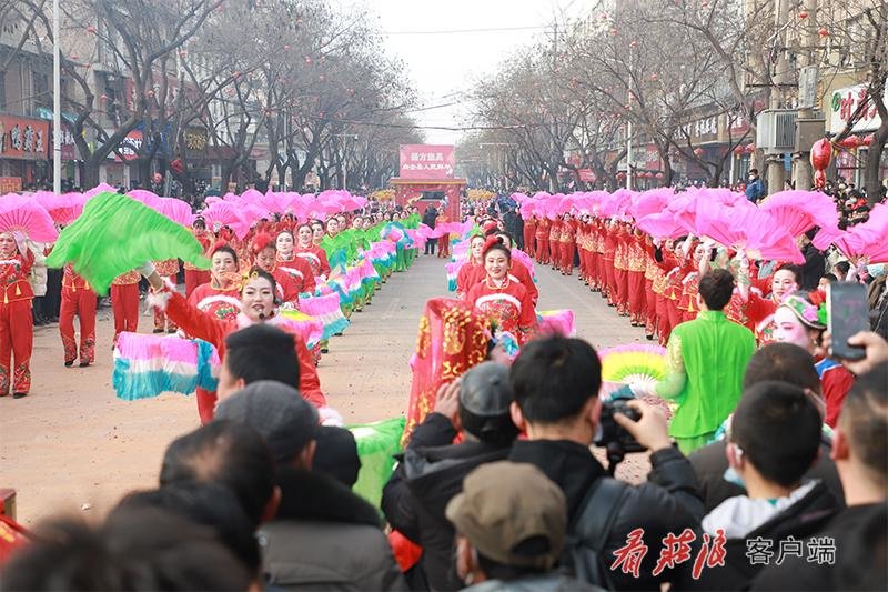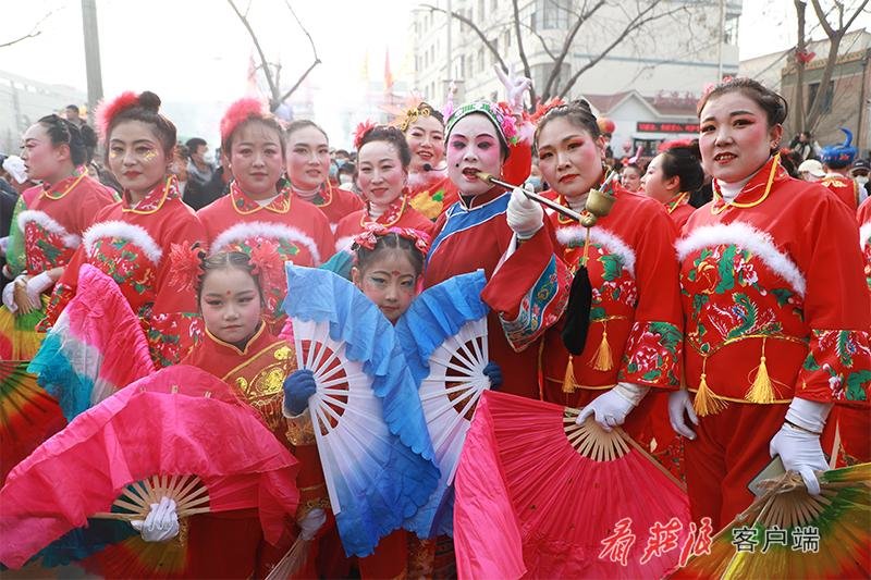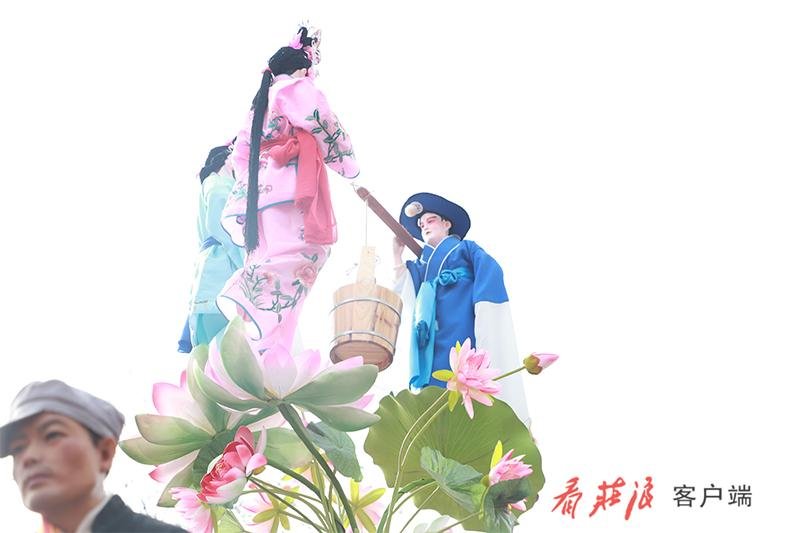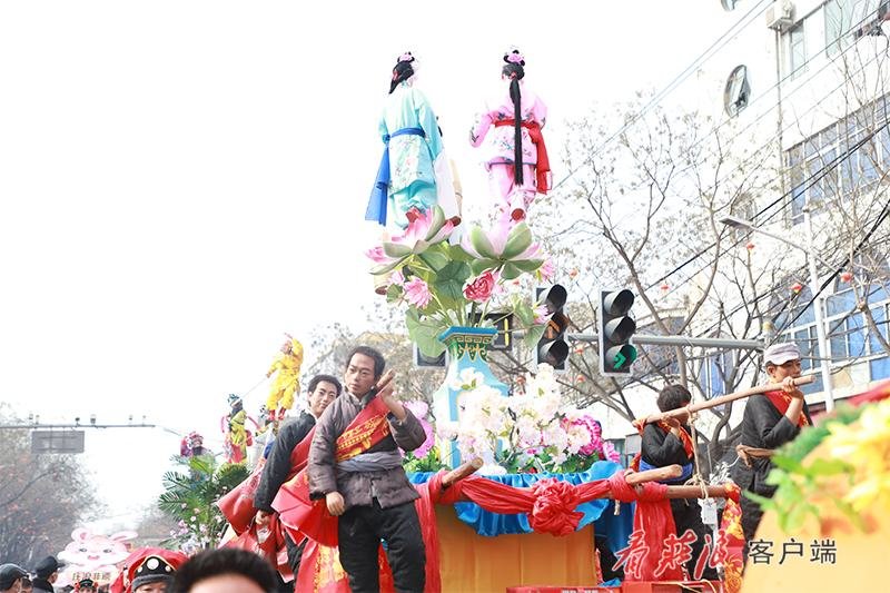表演现场,只见一辆辆华丽的彩车,一架架精巧的高抬,一队队热烈的秧歌,伴着炮声隆隆,和着鼓声连连,在人头攒动的水洛街头行进。