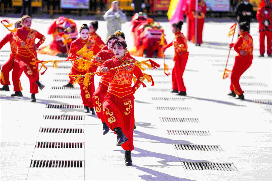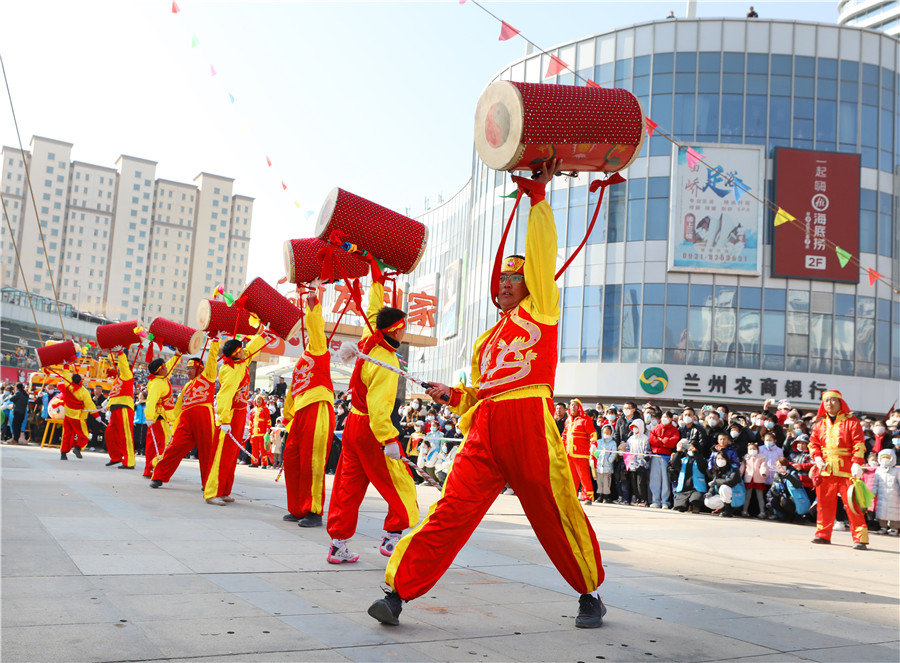 近日,甘肃省武威市凉州区举办了以“社火迎春展新篇,鼓舞凉州创辉煌”为主题的社火展演活动,让广大市民切实体验了一场年味十足的民俗“文化盛宴”。17支社火展演队伍共4000余人在锣鼓声中,整装齐聚,隆重登场。扭秧歌、舞长龙、耍狮子、踩高跷等精彩节目接连上演。