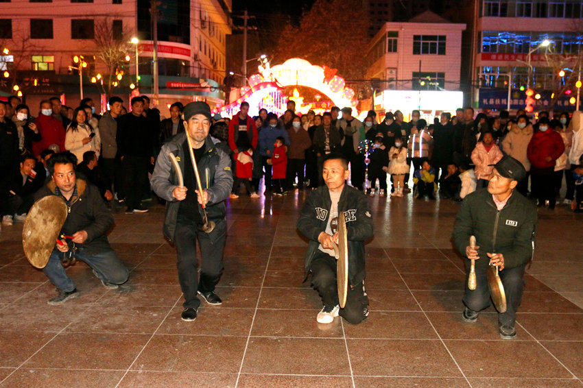 2月4日,元宵佳节来临之际,甘肃陇南礼县城关镇贾胡窑村村民在县城广场上演了一场传承古老且具有民间特殊风韵的舞蹈——“羊皮扇鼓舞”,特有的民俗文化给市民带来了无限的欢乐,给元宵佳节增添了吉祥喜庆的氛围。