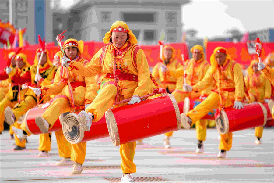 奔流新闻:甘肃陇南礼县:羊皮扇鼓舞 欢舞元宵节