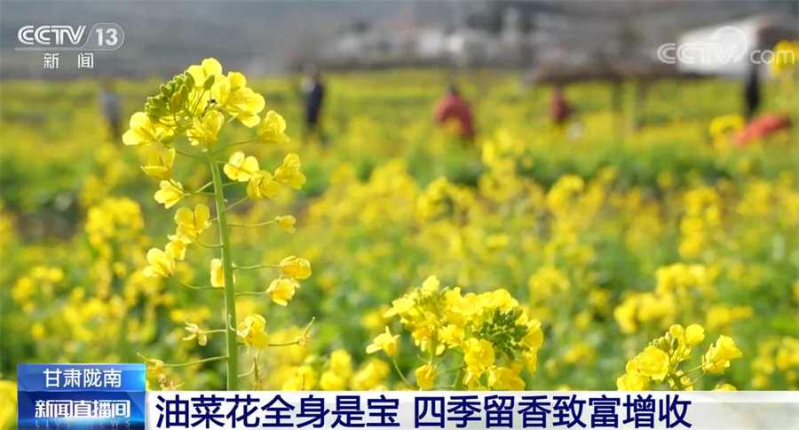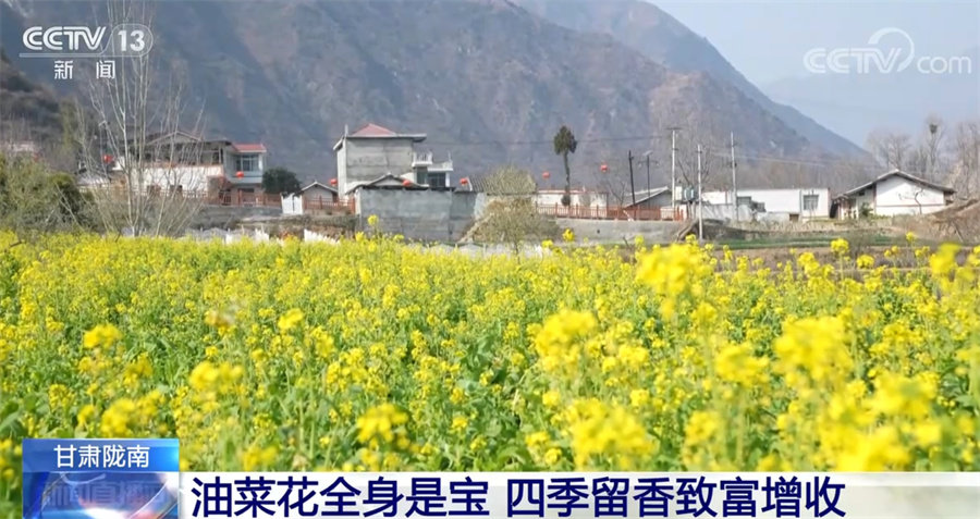 央视网消息:甘肃省地处西北腹地,但在其最南端的陇南市,山间的油菜花从腊月开始就逐渐开放,如今已经进入了盛花期,一派欣欣向荣的景象,给西北的初春增添了蓬勃生机。