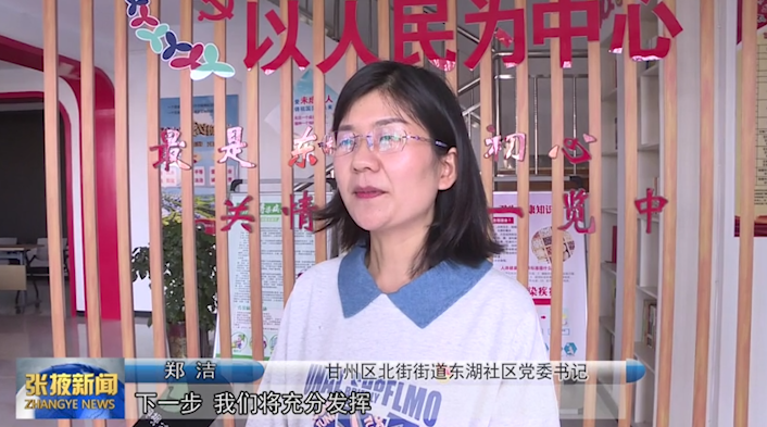 甘州区北街街道东湖社区党委书记郑洁:“下一步,我们将充分发挥城市基层党建的政治优势、组织优势和密切联系群众优势,打造组织有力量、服务不打烊、有事好商量、民呼必有应、幸福暖万家的和合社区。”