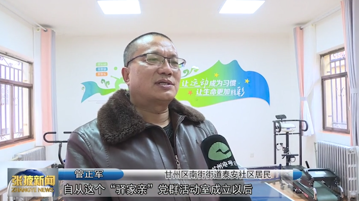 甘州区南街街道泰安辖区居民管正军:“自从这个‘驿家亲’党群活动室成立以后,我们下下棋、打打乒乓球,健个身都有了地方。”
