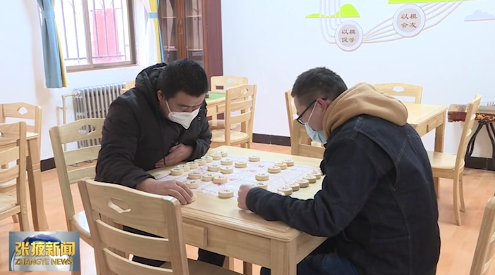在甘州区南街街道泰安社区“驿家亲”网格党群服务驿站,记者看到社区居民们正在下象棋、打乒乓球。