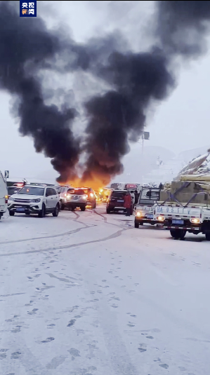 原标题:甘肃兰州因降雪致一起多车相撞事故 部分车辆起火