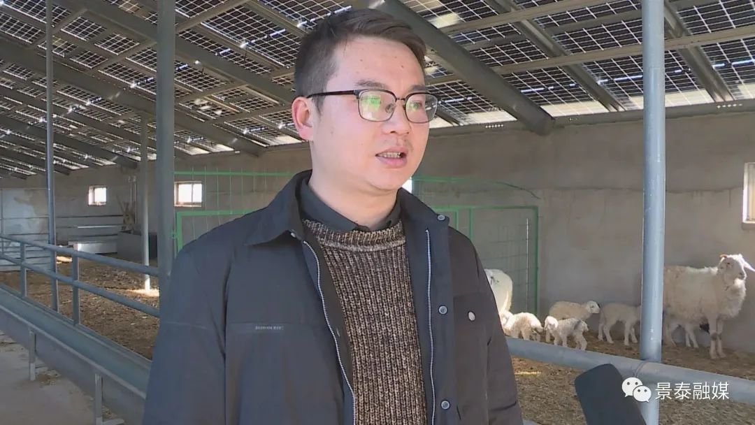 站在基地放眼望去,上面是一块块太阳能光伏板,板下面是一个个干净整齐的羊圈。养殖场负责人告诉记者,在这里建设羊圈的顶棚全部用光伏板覆盖,实现顶上光伏发电,舍内养羊,发电养羊两不误。