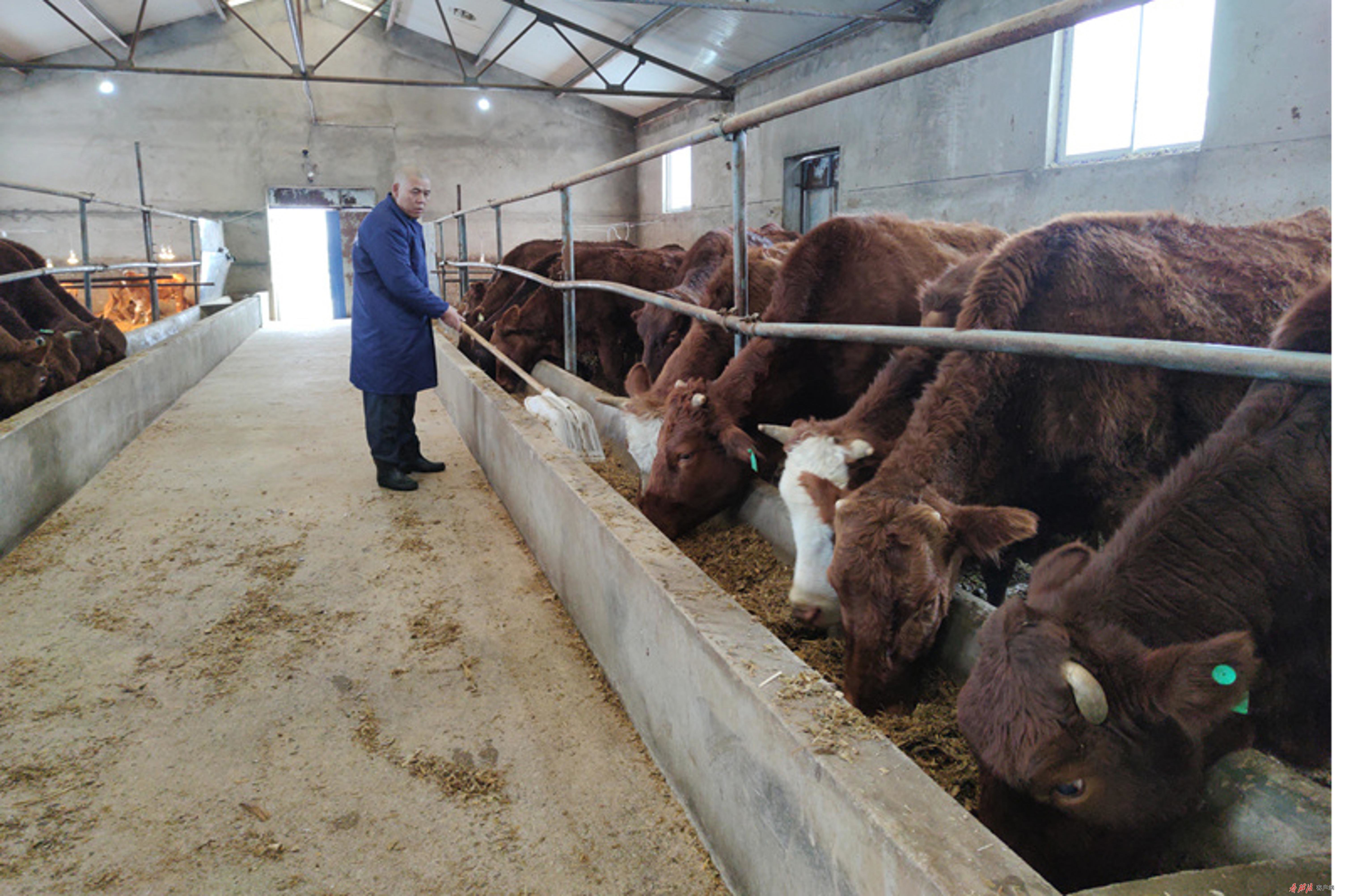 走进柳梁镇康鑫达农业产业发展有限公司的牛舍,刚出生不到20天的小牛犊在保暖灯下沐浴着“阳光”。饲养员魏砖头正忙着给新生牛犊添加饲料、清水。这个春节,魏砖头格外地忙,这个月他共接生了38只小牛犊。