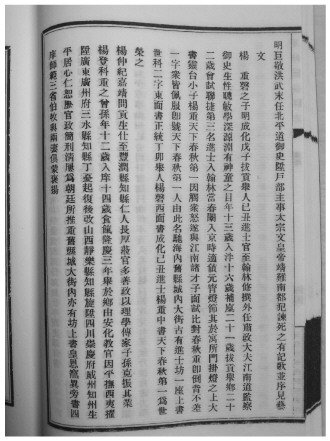关于杨重的记载文字,是在明代嘉靖《平凉府志》卷六(关于灵台县内容之集子)人物篇中“进士”辑中有记:“杨重,邵寨人,治《春秋》有名,成化乙丑进士,授临汾知县,升河南钧州知州。”另有1934年民国《灵台县志》记载:“杨重,磬之子。明成化戊子拔贡、举人,乙丑进士,官至翰林修撰,外任肃政大夫、江南道监察御史。生性聪敏,学深源渊,有神童之目。年十三岁入泮,十六岁补廪,二十一岁拔贡举乡,二十二岁会试联捷第三名进士,入翰林。当春闱入京时,适值元宵灯节,其于寓所门挂灯之上,大书‘灵台小子杨重,天下《春秋》第一’。因触众怒,遂与江南诸才子面试比对《春秋》,重即倒背不差一字,众皆佩服,即号天下《春秋》第一人,由此名驰海内。旧县城内大街古有进士坊一座,上书‘世科’二字,东面书‘正统丁卯举人杨磬’,西面书‘成化乙丑进士杨重’,中间书‘天下《春秋》第一’,为世荣之。”而后来1987年新版县志还在同样的介绍中又补充了几个具体时间概念:“杨重(1446年——?)。明宪宗成化四年(1468年)举人,五年(1469年)中进士。”