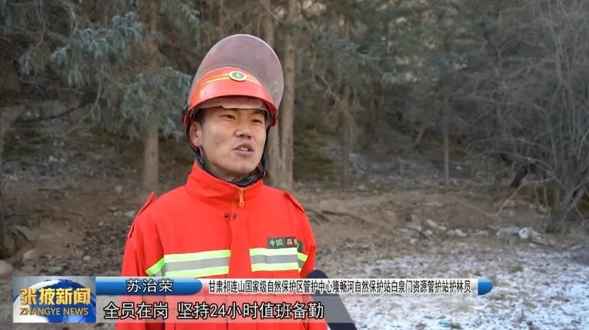 甘肃祁连山国家级自然保护区管护中心隆畅河自然保护站白泉门资源管护站护林员 苏治荣 :“全员在岗,坚持24小时值班备勤,始终保持临战状态,坚决克服麻痹和侥幸心理,每项工作、每个环节都制定了专人负责,层层落实责任,确保森林草原防火工作平安稳定。”