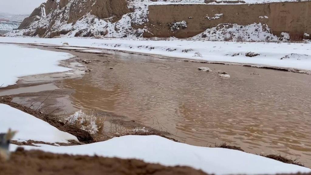 春寒料峭中,一场降雪过后,甘肃省白银市会宁县银装素裹,穿城而过的祖厉河大部分河面被冰雪覆盖,少量河水淙淙向北,朝着下游的黄河蜿蜒而去。
