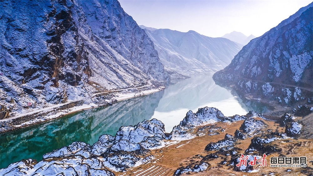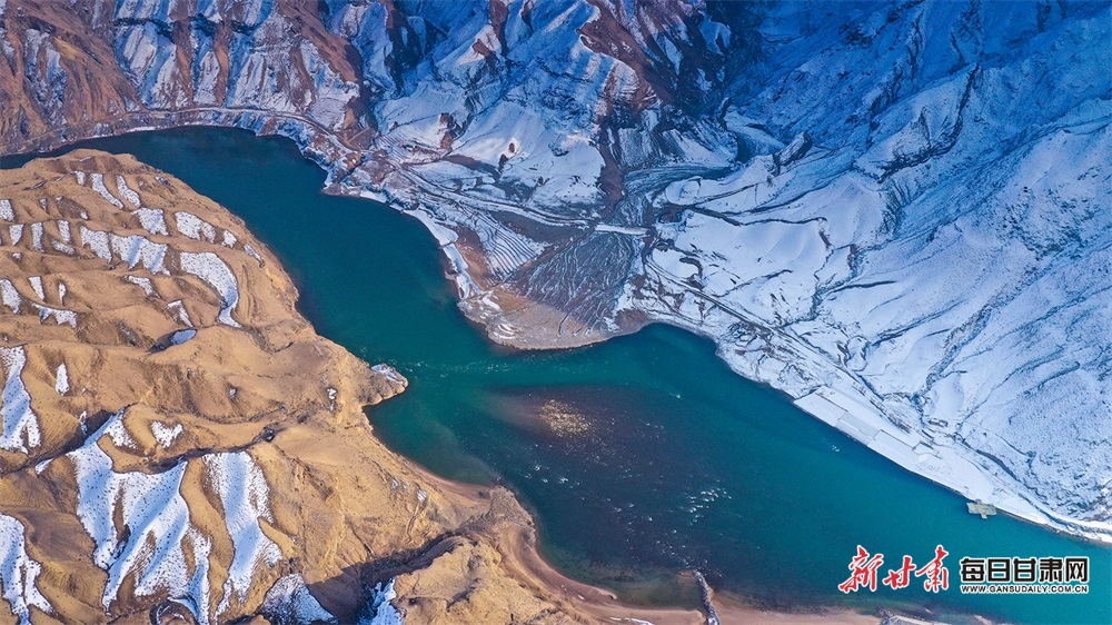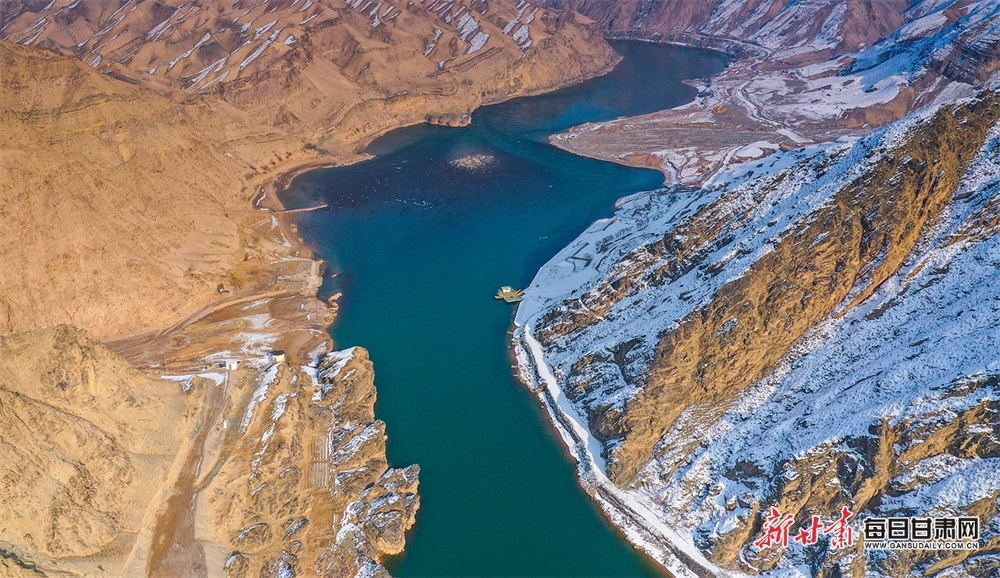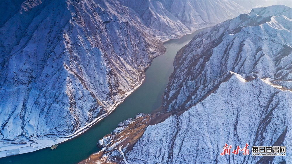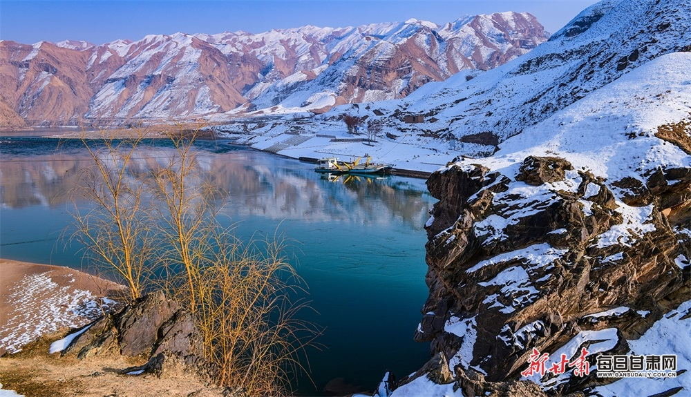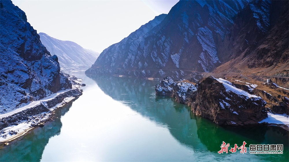 早春二月,位于黄河上游、甘肃白银与宁夏中卫境内的黑山峡峡谷银装素裹,清清的河水蜿蜒流过连绵起伏的山峦、绕过弯月形的村庄,山水相依、动静相宜;白雪覆盖在岸边的礁石上,犹如一朵朵盛开的雪莲花,在蓝绿色的河水映衬下美不胜收。