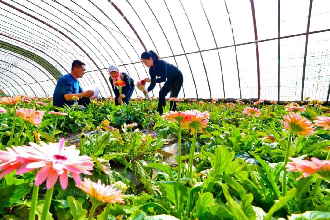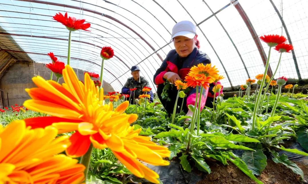 连日来,临泽县倪家营镇梨园村连片鲜切花种植大棚内种植的非洲菊、玫瑰、康乃馨等鲜花进入盛开采摘期,花农们正忙碌着进行采摘、分拣、打刺、包装,按订单发往各地花店。