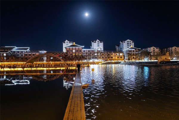 阳春三月,敦煌党河风情线成功蓄水,再现碧波荡漾的迷人水景。夜幕降临时,游客及敦煌市民在风情线漫步,感受春的气息,共赏如画夜景。